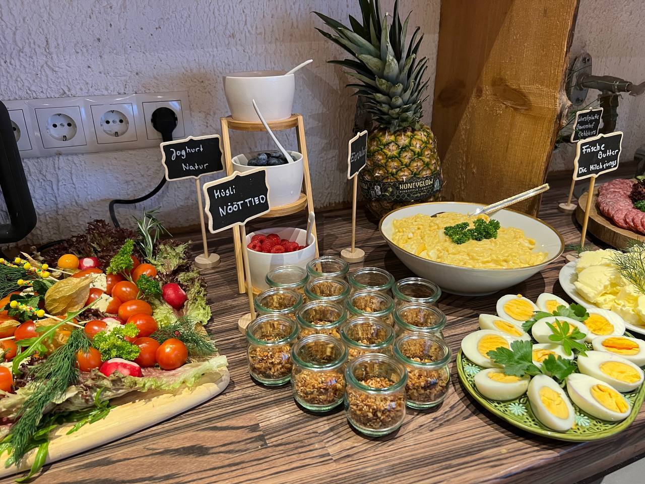 Verwöhne deinen Gaumen mit regionalen Spezialitäten wie frischen Eiern und aromatischem Honig und starte deinen Tag mit einem Geschmackserlebnis, das Tradition und Qualität auf köstliche Weise vereint.