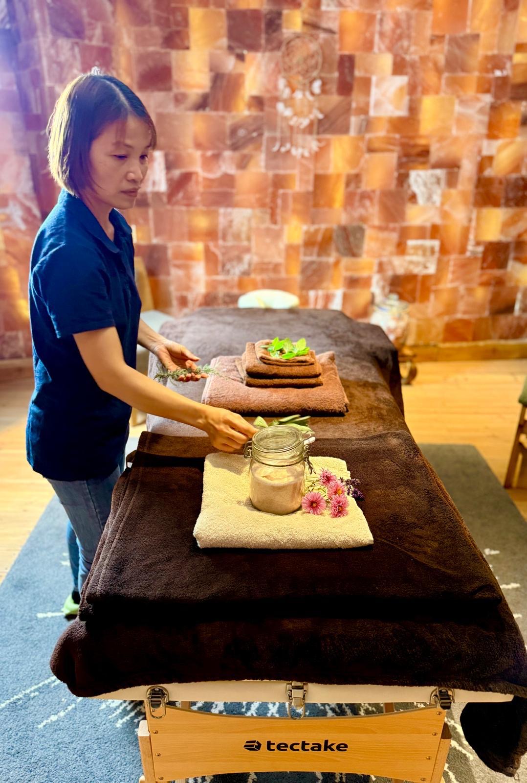 Die vietnamesischen Massagen verbinden traditionelle Techniken mit der besonderen Atmosphäre des Salzturms. Sanfte Dehnungen, fließende Bewegungen und gezielter Druck fördern die Durchblutung, lösen Verspannungen und bringen Körper und Geist ins Gleichgewicht.